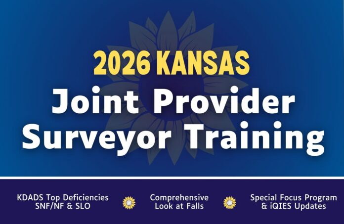 KDADS leadership will also join us to discuss updates to iQIES, the Special Focus Facility (SFF) program, and top-cited deficiencies for SNF and SLO. Up to 6.5 continuing education hours are also available for administrators, operators, and nurses who attend.
