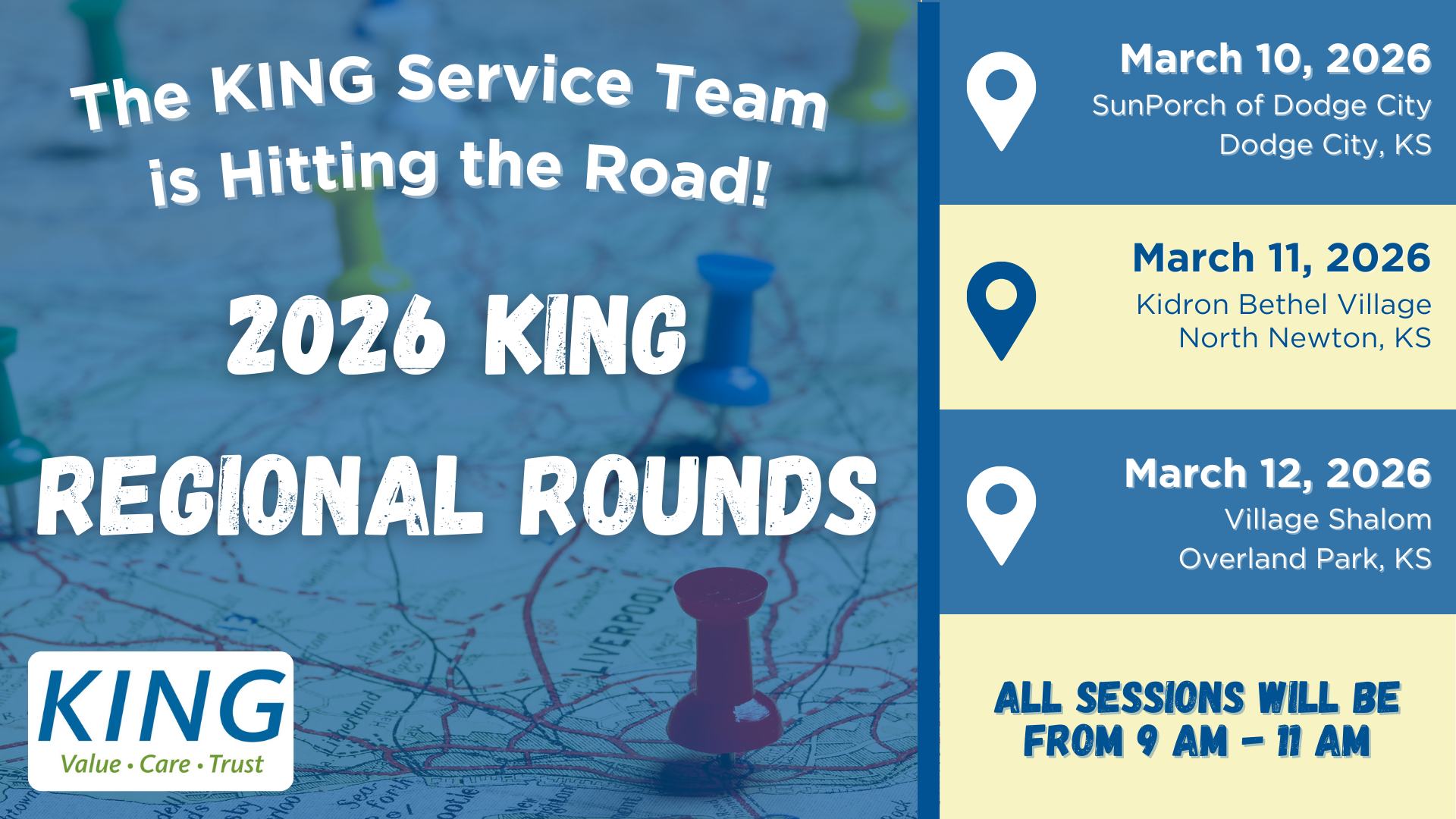 The KING Service Team will be hitting the road in early March to visit members in Southwest, Central, and Northeast Kansas during our annual KING Roundtables. Join the team to discuss timely workers’ compensation happenings, connect with other providers dedicated to safety, and ask questions to help with your workers’ comp program.