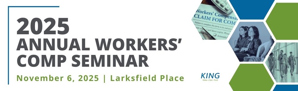 KING is pleased to sponsor this year’s Annual Workers Compensation Seminar. Seminar highlights include a Legal & Case Law Update, Pre-Employment Testing presented by Anna Woods, and Dr. Todd Caze will discuss Concussion Claims.