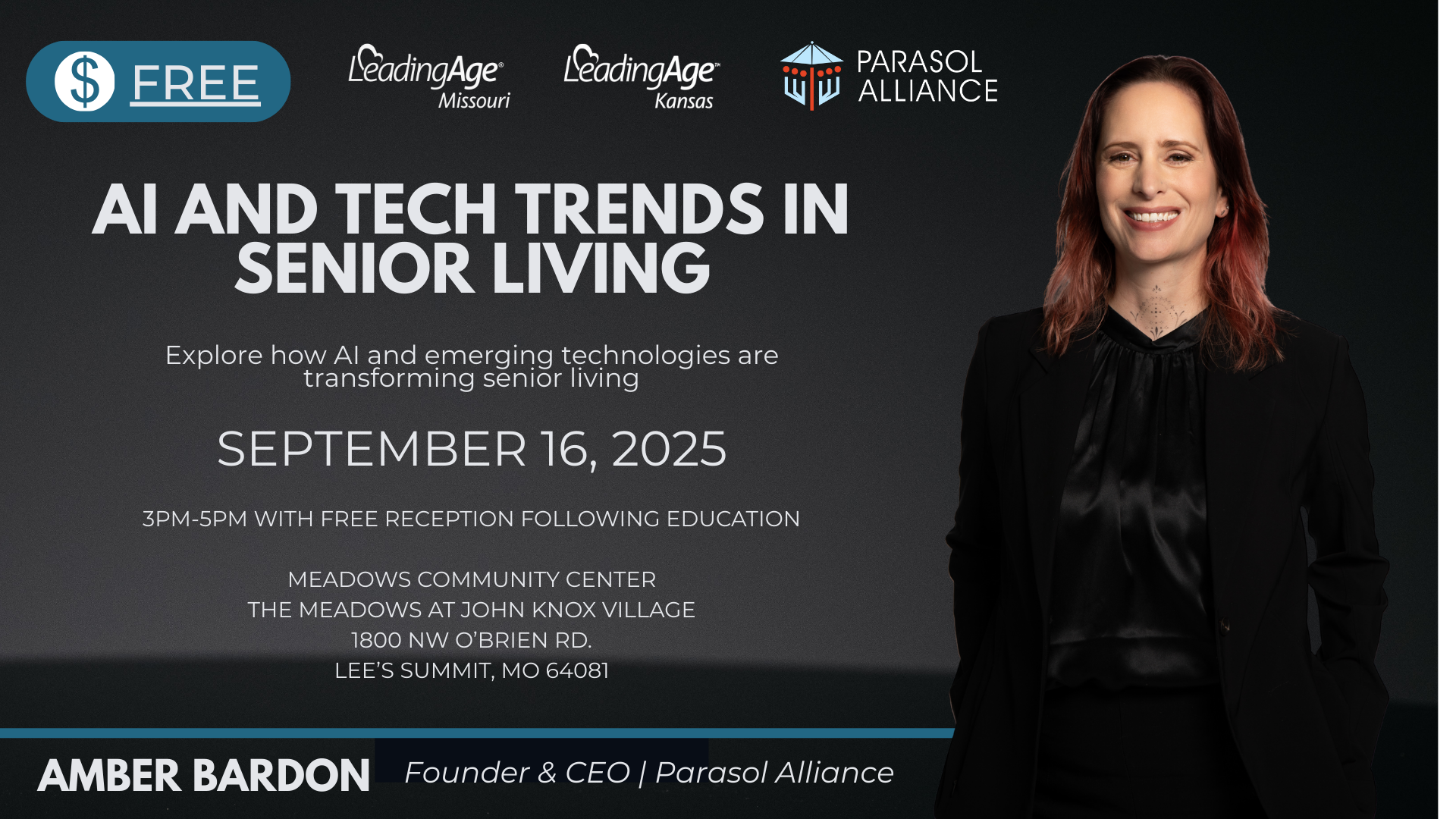 Join us on September 16th for AI and Tech Trends in Senior Living to experience expert insights into AI trends, governance, and ethical considerations to help leaders make informed decisions. Participants will learn from Parasol Alliance Founder and CEO, Amber Bardon, about how AI can optimize operations, personalize resident experiences, and maintain data security and compliance.